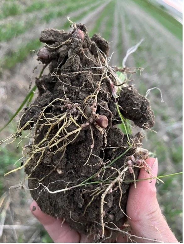 Figure 1: Full Season Cover germination & nodulation. (June 10th, 2024)