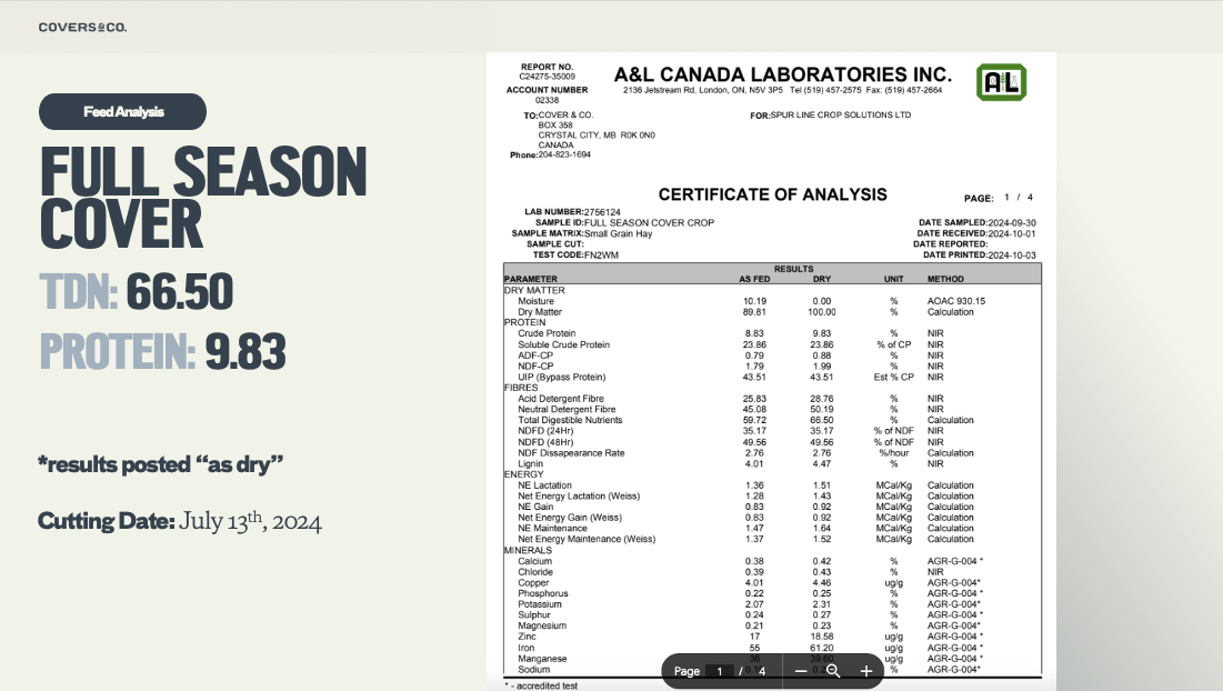 Reason For Trial: Full Season Cover vs. Barley (Evaluate soil health benefits, cost of production, animal integration)