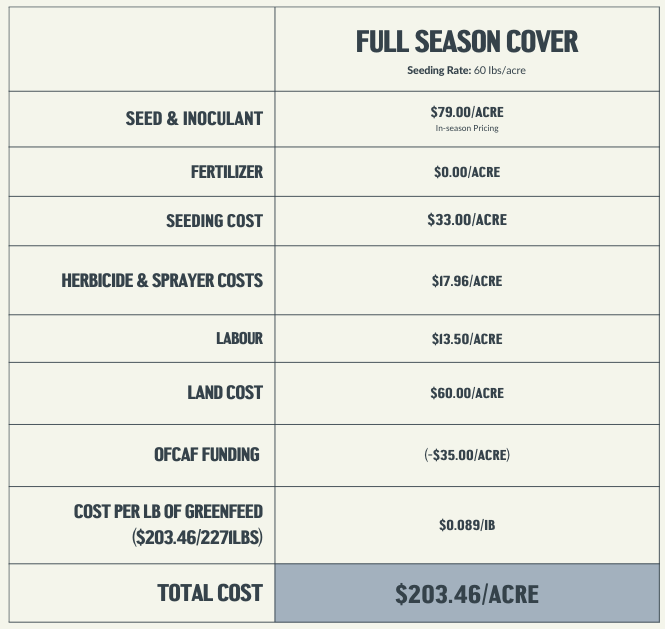 Full Season Cover: seeded at 60 lbs/ac with N-DURE Inoculant