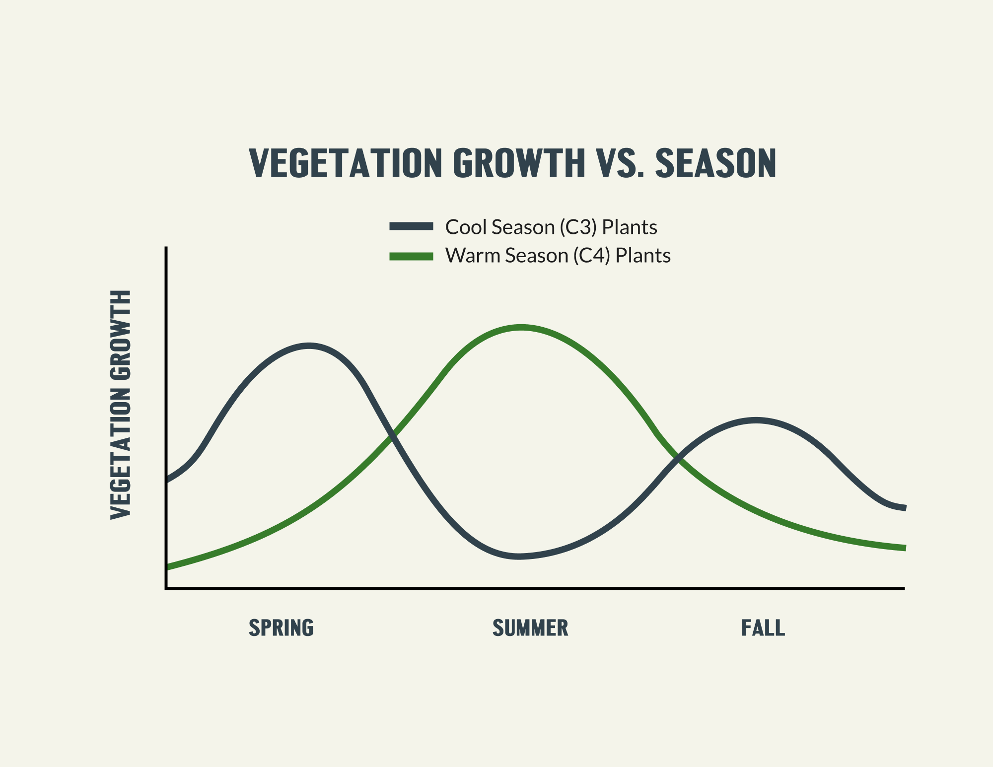 If hot/dry conditions are present, warm-season plant species will accumulate biomass. If cool/wet conditions are present, cool-season plant species will accumulate biomass. Why?