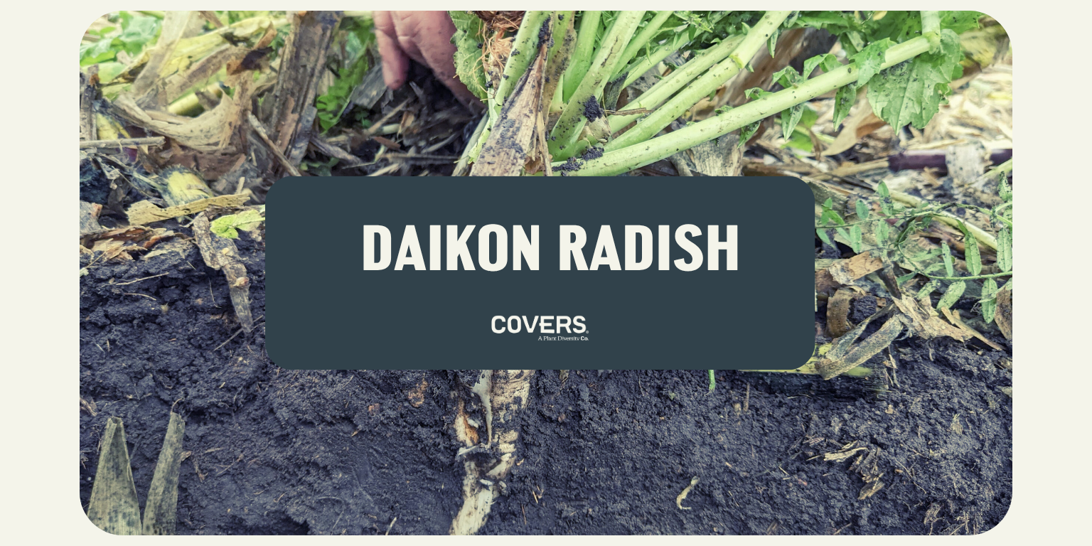 A brassica used to add rooting depth, soil structure benefits, and below-ground diversity.